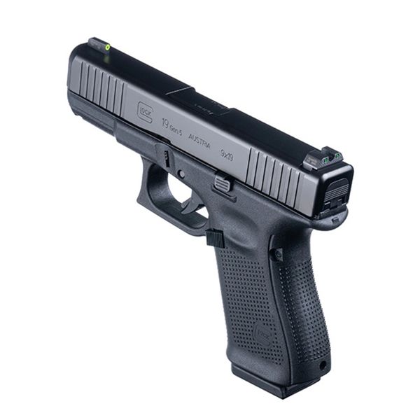 La pistola GLOCK 19 Gen5 en 9 mm Luger es ideal para un papel más versátil debido a sus dimensiones reducidas. El nuevo diseño del armazón sin ranuras para los dedos permite personalizar al instante su agarre para adaptarse a cualquier tamaño de mano mediante el montaje de las diferentes correas traseras.